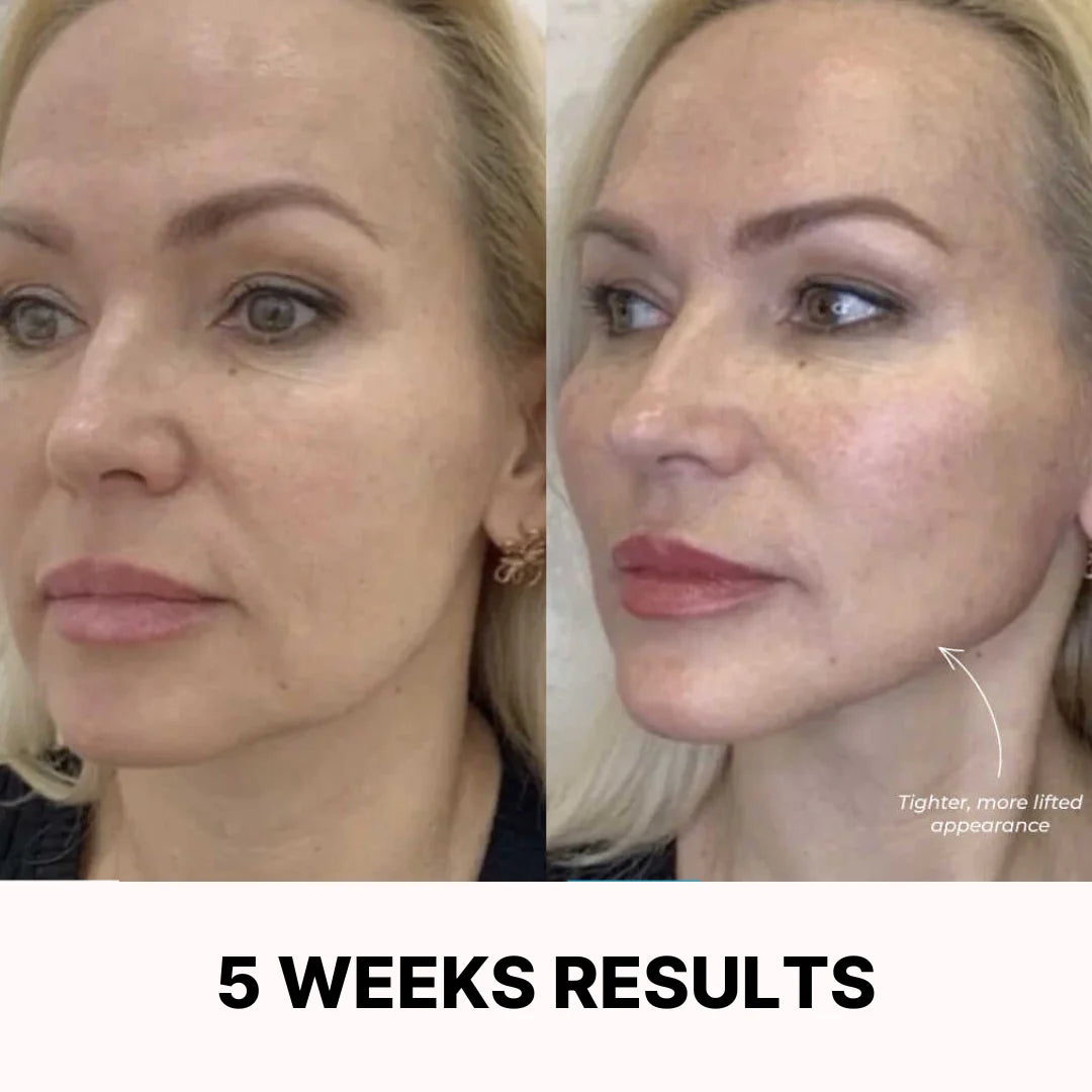 The LED light stimulates collagen production, which helps firm the skin, reduce the appearance of fine lines, and improve overall texture.